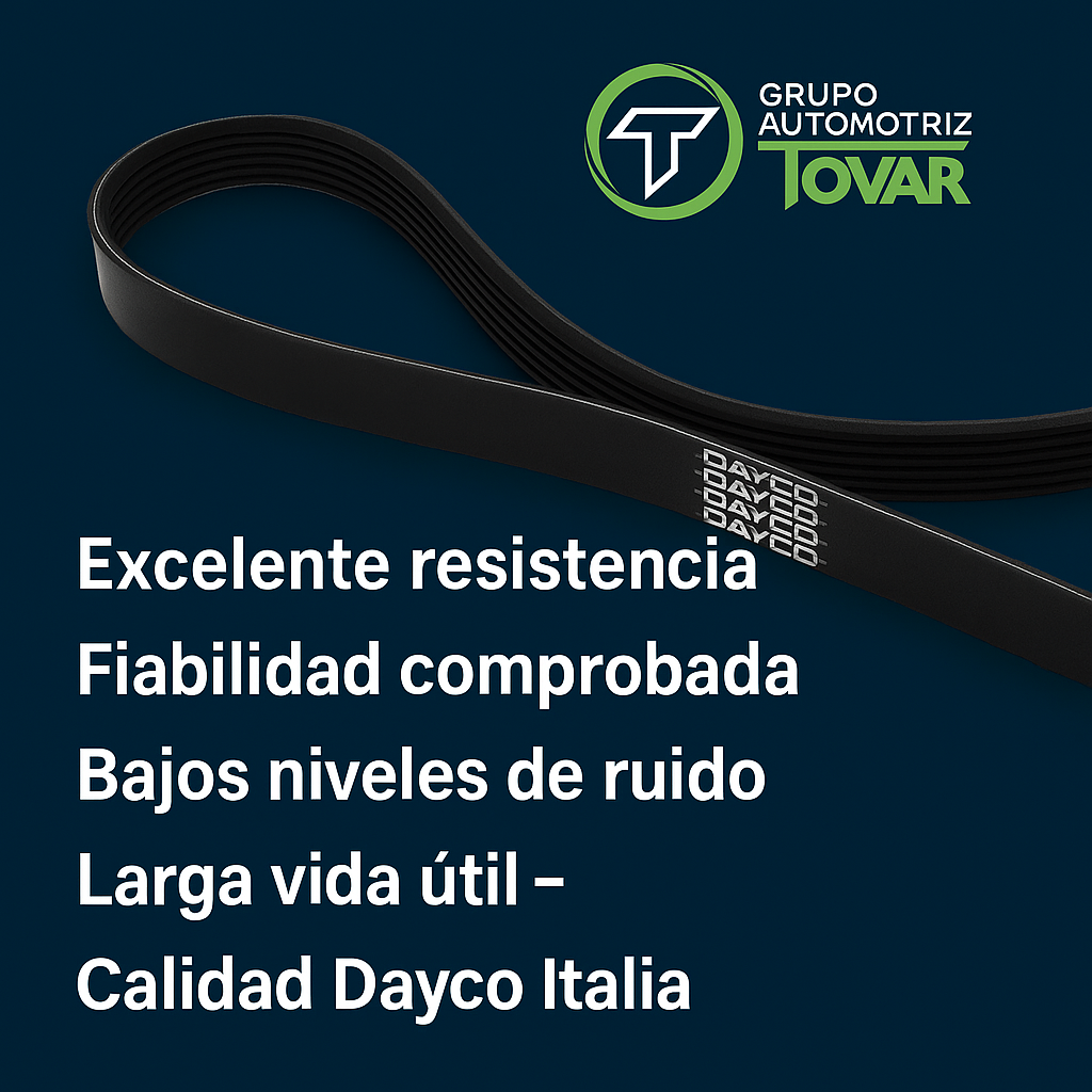 Correa de accesorios Dayco Poly-V 6PK1450 para Jeep Renegade 1.8, fabricada en Italia con tecnología OEM que ofrece alta resistencia, fiabilidad comprobada y bajo nivel de ruido.